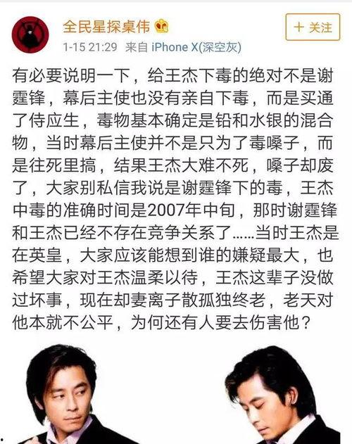 首先,我们要了解一下这个事件的背景。王杰,一个曾经红极一时的歌手,凭借其独特的嗓音和深情的演绎,赢得了无数粉丝的喜爱。近年来,他的生活却充满了争议和猜测。这次,卓伟的爆料,无疑又给王杰的生活蒙上了一层阴影。